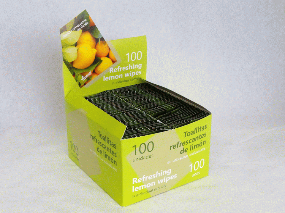 Entre nuestra gama de productos destacan las toallitas refrescantes, disponibles en una amplia variedad de aromas: limón, lavanda, aroma refrescante, aloe vera, etc.