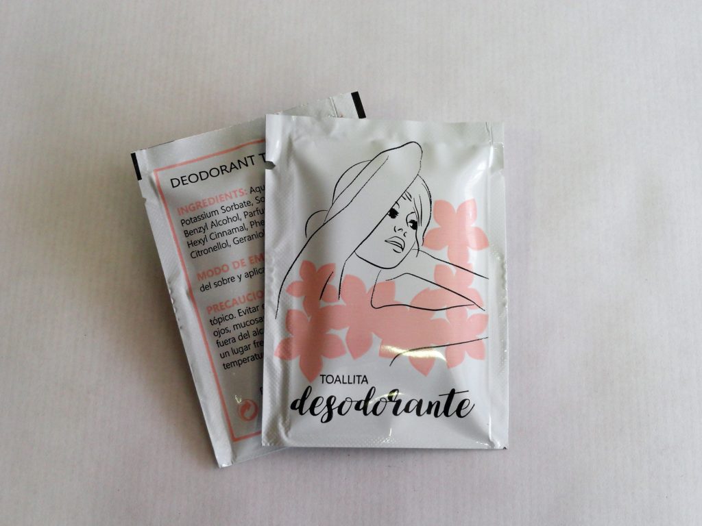 Modo de empleo: Extraer la toallita del sobre y aplicar en axilas y torso.