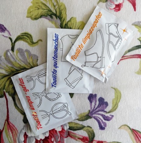 Toallitas húmedas impregnadas con diversas soluciones para la limpieza de enseres personales.